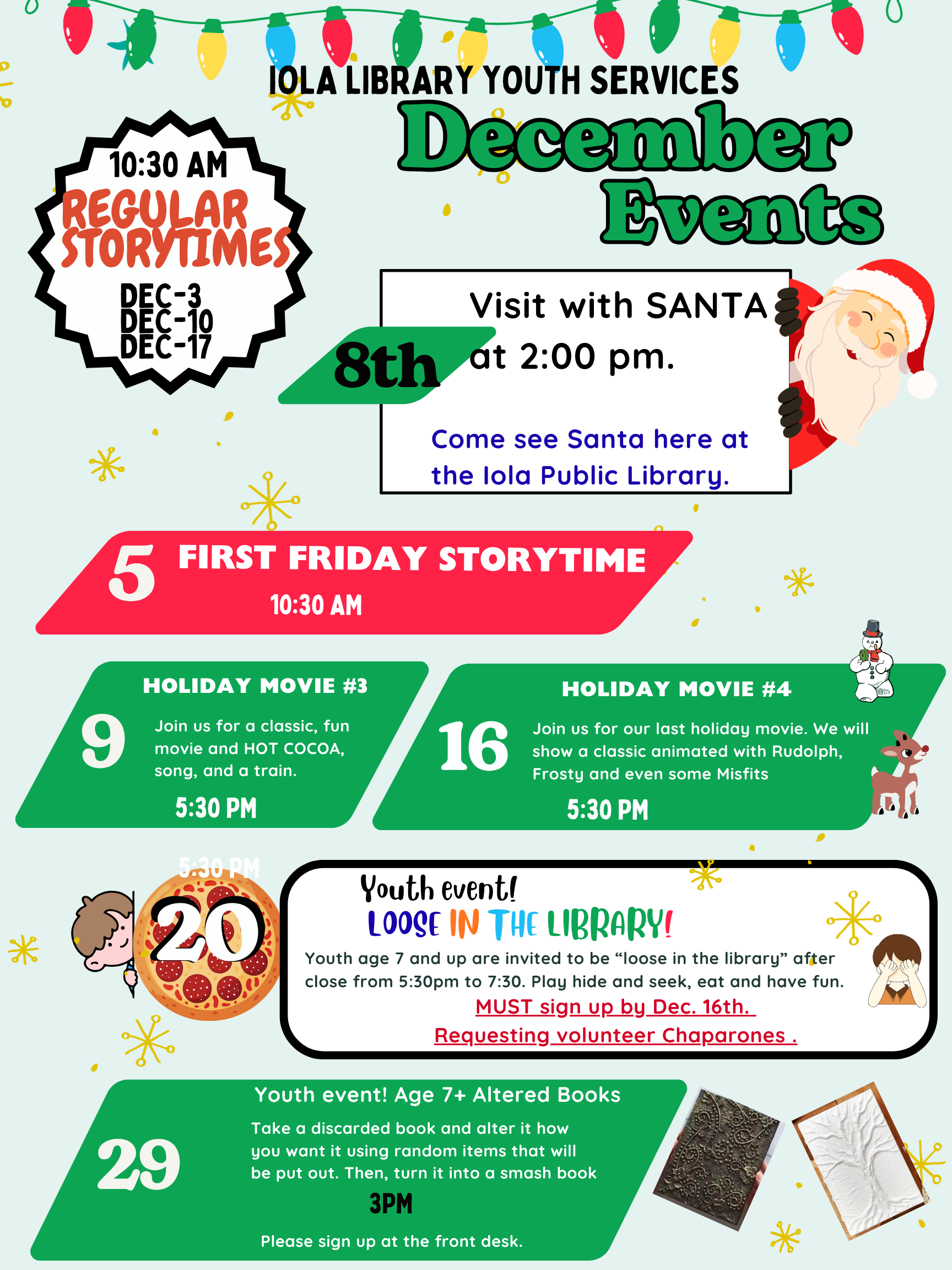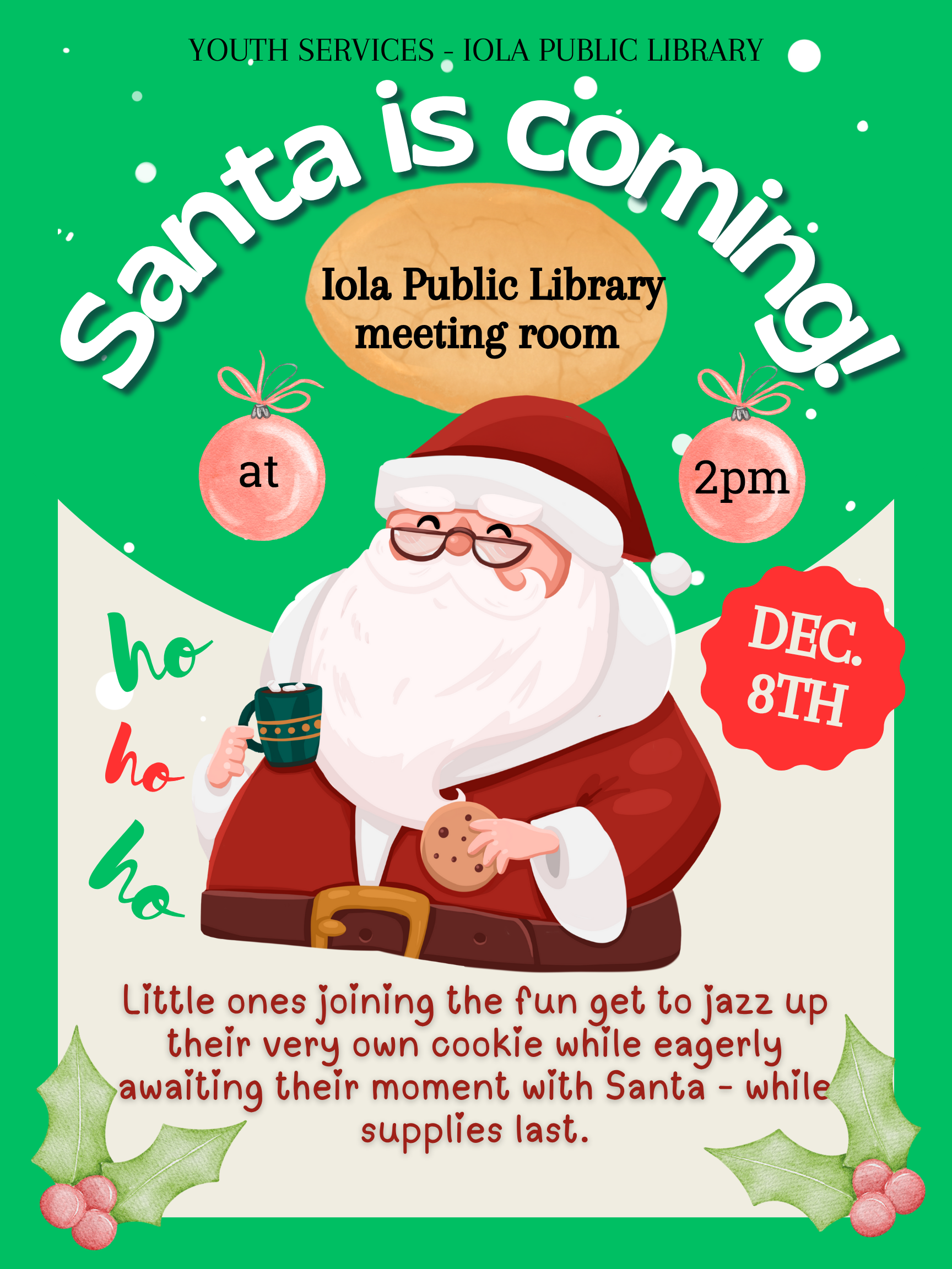 - Dec. 8 at 2 pm: Santa is coming!