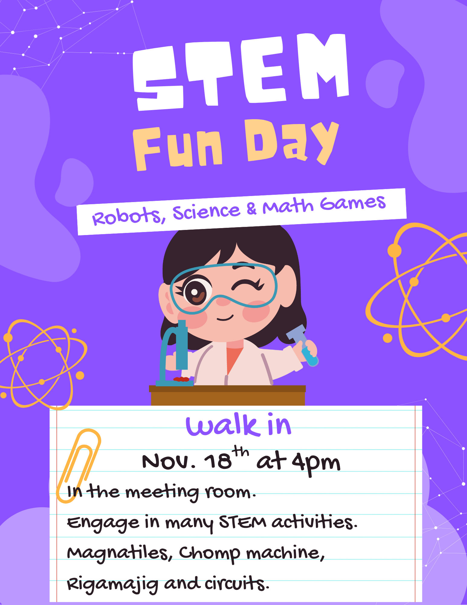 Purple And Yellow Playful STEM Fun Day Science And Math Flyer (1)
